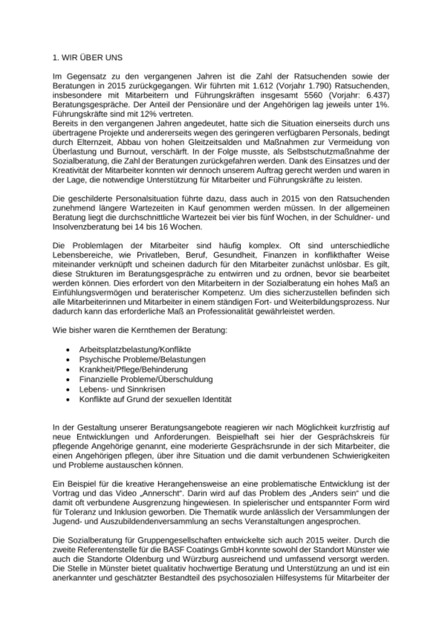 In our reports, we inform you of the activities performed by BASF Stiftung, in particular about the latest developments in connection with the Employee Assistance Program and financial support offers.