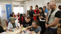 About 1,000 children visit the school every day in shifts. More than 8,000 people live in this container city right now, but getting more daily due to relocation from tented areas. © UNICEF/Kilic