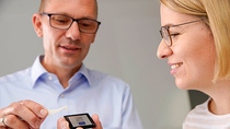 “Wir können Ihre Produktanforderungen nicht erfüllen.” So lautete die einhellige Antwort aller Lieferanten, als trinamiX bestimmte Detektoren in Form eines kleinen Chips in großer Stückzahl bestellen wollte. Eine enttäuschende Nachricht. Zur Herstellung eines Sensorsystems für Abstandsmessungen suchte das Team um Sebastian Valouch und Wilfried Hermes etwas, das es in dieser Form noch nicht gab: einen hauchdünnen Infrarot-Detektor aus Bleisalz. Die bisher auf dem Markt verfügbaren Modelle waren gegenüber Wasser und Sauerstoff sehr empfindlich, weshalb sie in einer Art Blechdose geschützt werden: fünf Millimeter dick – eine wahre Platzverschwendung in der miniaturisierten Welt der Mikrochips.
