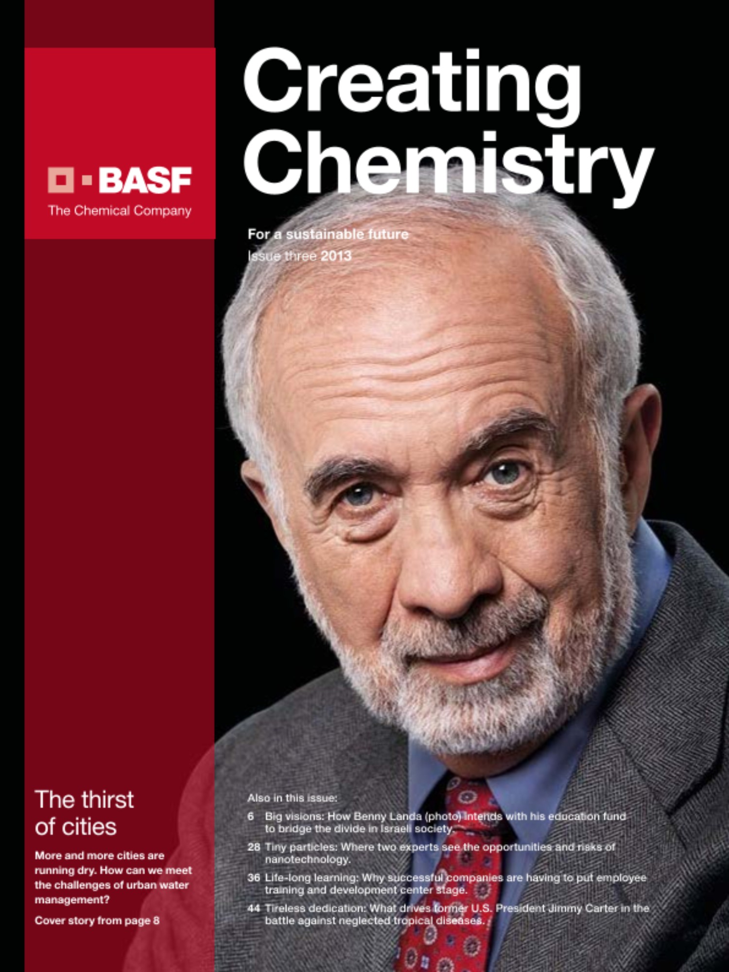 Creating Chemistry provides insights into key global challenges and describes how BASF helps to meet them through innovation. Topics of worldwide importance are assessed from a variety of viewpoints, with BASF’s perspective just one of many. The aim is to allow readers to form their own opinions using the information provided.
