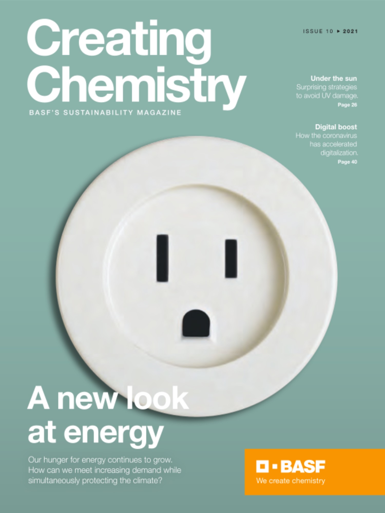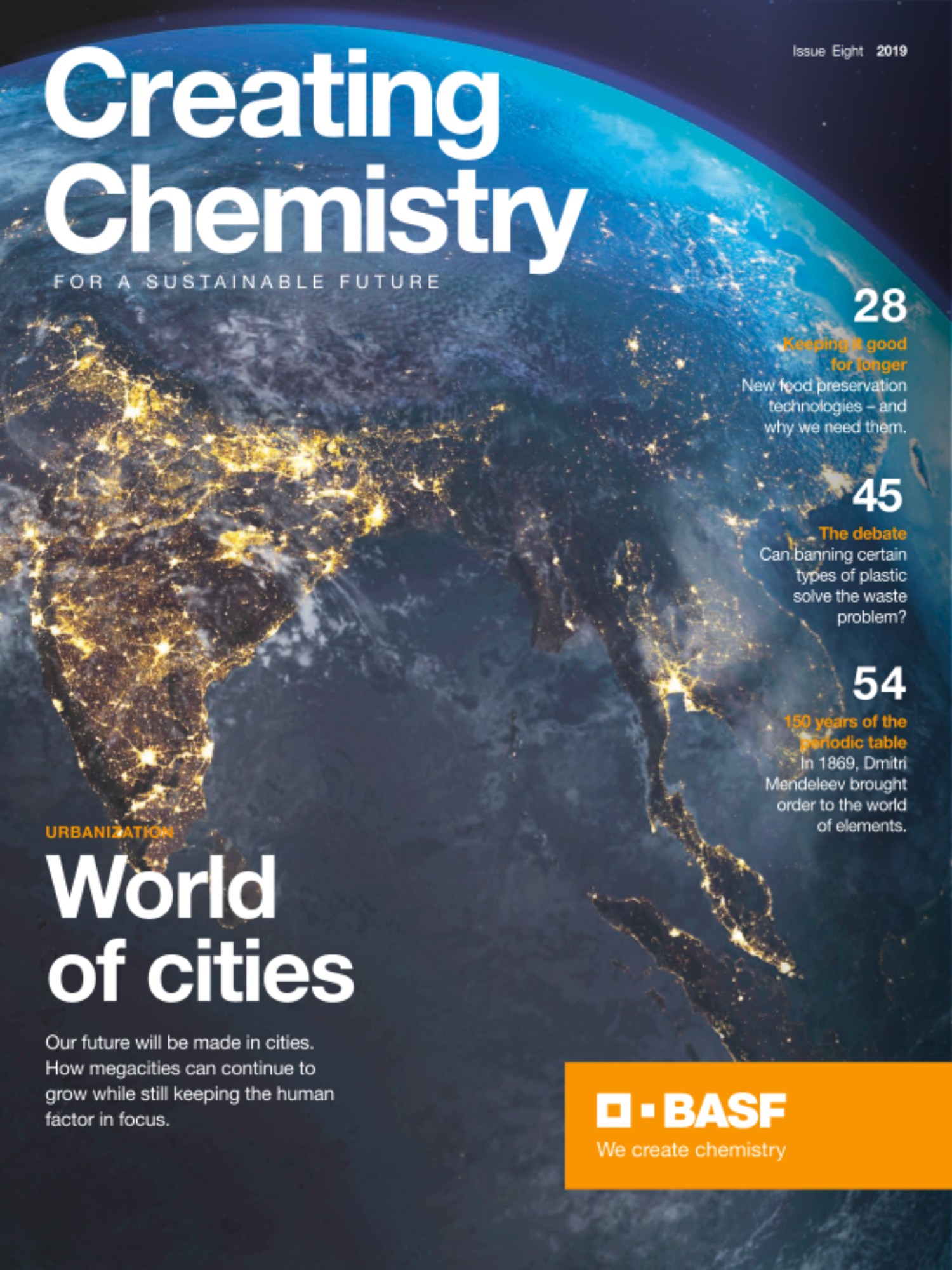 Products and solutions based on chemistry enrich our lives every day. They help to conserve resources, to produce healthy food and to improve people’s quality of life. But chemistry’s contribution is often not easy to see at first glance. With our Creating Chemistry magazine, we aim to show how chemistry helps to meet global challenges.