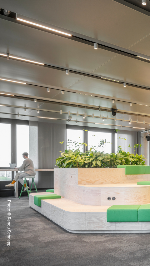 Unsere Projekt- und Besprechungsräume bieten Platz für zwei bis 200 Personen und sind vollständig für hybride Zusammenarbeit ausgestattet. Mit unserer App können Mitarbeitende ganz einfach Arbeitsplätze und Räume buchen, Termine planen und sich im Gebäude mithilfe eines intuitiven 3D-Grundrisses orientieren – zugänglich über den Browser oder mobile Geräte.