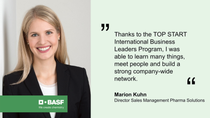 Walk along new paths: Marion Kuhn's wish for a job in an international environment has come true at BASF. Since starting her career in the TOP START International Business Leaders Program, the Austrian native has already worked in Germany, Eastern Europe, Singapore and Japan. For the past four years, Marion has been working in the United States as Director Sales Management Pharma Solutions North America. She leads a team of more than 20 employees in the Nutrition and Health division.