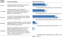 After reassessing the portfolio in 2023 and 2024, we reviewed our TripleS methodology in 2025 to align it with the latest regulatory developments. We also adapted the segmentation process described in the manual to reflect innovative developments in the field of IT. As a result, we categorize our product portfolio into five segments, taking sustainability-related aspects into account: Pioneer, Contributor, Standard, Monitored and Challenged. We also take regulatory changes into account if they have a material impact on our portfolio and therefore also on our segmentation. For detailed information see the BASF Report 2025.