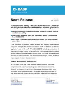 Close partnership, outstanding material expertise and extensive possibilities for component testing by the plastics manufacturer BASF are the basis for the new application made of Ultramid® (PA). HEIDELBERG, a leading manufacturer of charging technology, is using polyamide for the first time as an injection-molded housing in the new Amperfied wallbox connect.home. This further development sets standards in wallbox production and, as an innovative charging solution, enables a major step into the future of electromobility.