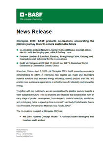 Shenzhen, China – April 3, 2022 – At Chinaplas 2023, BASF presents co-creations demonstrating its efforts in improving how plastics are made and developing material solutions that increase energy efficiency, extend product shelf life, and enable more sustainable applications in infrastructures for eMobility and renewable energy.