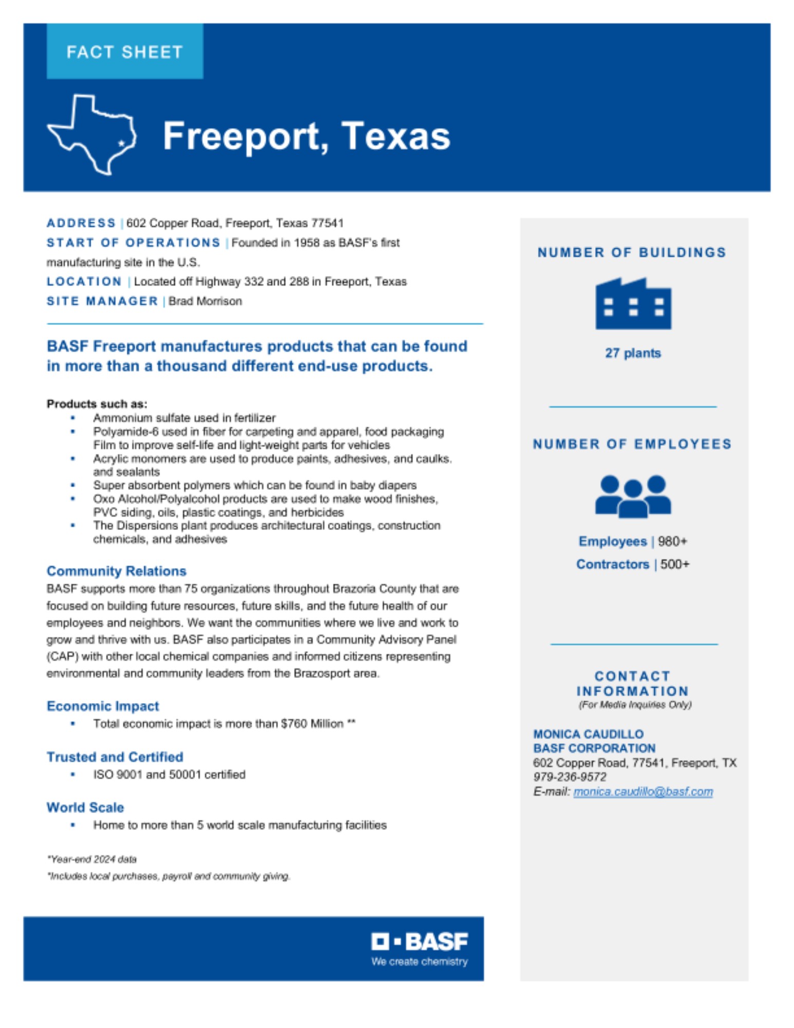 With sites in Houston, Freeport and over 10 other areas in the state, Texas is home to one of the largest contingencies of BASF employees in North America.