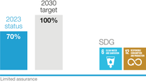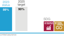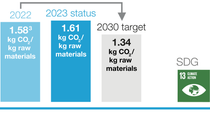 In addition to these financial targets, we have set ourselves broad sustainability targets. We want to considerably reduce our CO2 emissions in the coming years. In addition to the targets for reducing our emissions from production (Scope 1) and the purchase of energy (Scope 2),1 we set ourselves a new target for our purchase of raw materials (Scope 3.1)2 in 2023. We have also added Scope 3.1 emissions to our net-zero target for greenhouse gas emissions by 2050. As part of this target, we are working to strengthen sustainability in our supply chains and use resources more responsibly.