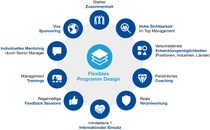 Das Programm ist darauf ausgelegt Ihr Potenzial zu maximieren, eine zukünftige Führungskraft zu werden. Lernen und wachsen Sie in einem internationalen und inspirierenden Umfeld, in dem Ihre einzigartigen Ideen und Perspektiven geschätzt werden. Bekommen Sie regelmäßiges und offenes Feedback, welches Sie in Ihrer Entwicklung unterstützt. In regelmäßigen Workshops mit Ihren TOP START Kolleg:innen erlernen Sie von Top-Coaches wichtige Führungsfähigkeiten und reflektieren im individuellen Coaching ihr Verhalten. Eine persönliche Bindung zu einem Senior Executive Mentor, sowie regelmäßige Kontakte zu Top Managern unterstützt ihre individuelle Entwicklung über das Rotationsprogramm hinaus. Darüber hinaus bietet das TOP START Alumni-Netzwerk eine starke Gemeinschaft und vernetzt Sie weltweit.