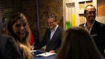 Um das Potenzial von Hertzstück™ als „Labor für die Hosentasche“ zu zeigen, hat BASF im Oktober 2018 zu einem ganz besonderen Abendessen eingeladen: Im futuristischen Pop-up-Restaurant „The Hertzstück™ Future Dining Room“ erläuterte der Wissenschaftsjournalist Dr. Michael Mosley, wie viel „Wissenschaft“ sich in den Dingen versteckt, die wir täglich essen. Influencer, Medienvertreter und die breite Öffentlichkeit hatten die einzigartige Gelegenheit, den Prototyp live zu testen und gleichzeitig ein exklusives Menü zu genießen. Darüber hinaus gaben die trinamiX-Experten am Abend weitere Informationen zur Technologie und beantworteten Fragen.