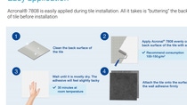 The new back tile adhesive solutions are fast and easy. By applying Acronal® 7808 as back tile adhesive between the tile and cementitious tile adhesive, it effectively promotes adhesion for secure installation espically under water immersed and heated confitions, where traditional thick-bed method has a challenge.