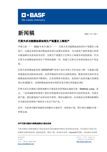 在巴斯夫,我们创造化学新作用——追求可持续发展的未来。我们将经济上的成功、社会责任和环境保护相结合。巴斯夫在全球拥有超过 111,000 名员工,为几乎所有国家、所有行业的客户成功作出贡献。我们的产品分属六大业务领域:化学品、材料、工业解决方案、表面处理技术、营养与护理、农业解决方案。2021 年巴斯夫全球销售额约 786 亿欧元。巴斯夫的股票在法兰克福(BAS)证券交易所上市,并以美国存托凭证(BASFY)的形式在美国证券市场交易。欲了解更多信息,请访问: www.basf.com。