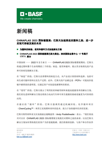 - CHINAPLAS 2023 国际橡塑展巴斯夫展位:深圳国际会展中心 17 号展厅 17F71 展台