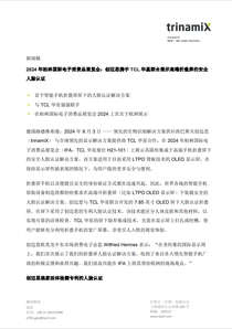 德国路德维希港,2024 年 9 月 3 日 —— 领先的生物识别解决方案供应商巴斯夫创迈思 (trinamiX) 与全球领先的显示解决方案提供商 TCL 华星合作,在 2024 年柏林国际电子消费品展览会(IFA,TCL 华星展位 H21-101)上展示其隐形集成于高端手机折叠屏下的安全人脸认证解决方案。该方案适用于目前采用 LTPO 背板技术的 OLED 显示屏,在保持显示屏性能表现的情况下,为用户提供更多安全与便利。