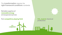 La transition vers une société durable reste un grand défi, d’autant plus que la croissance démographique et une augmentation de la prospérité vont de pair avec une hausse de la demande de nourriture, de logements, de confort, de mobilité et d’énergie. Les produits chimiques jouent un rôle important sur tous ces plans. Pour les produire à l’avenir en réduisant les émissions, de nouvelles idées et des solutions innovantes sont nécessaires.