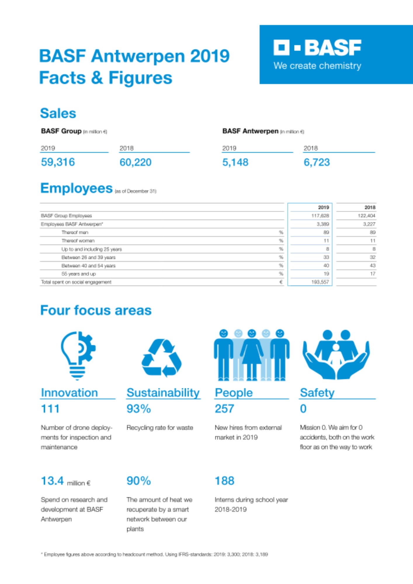 Bekijk hieronder alle facts & figures van BASF Antwerpen in 2019.