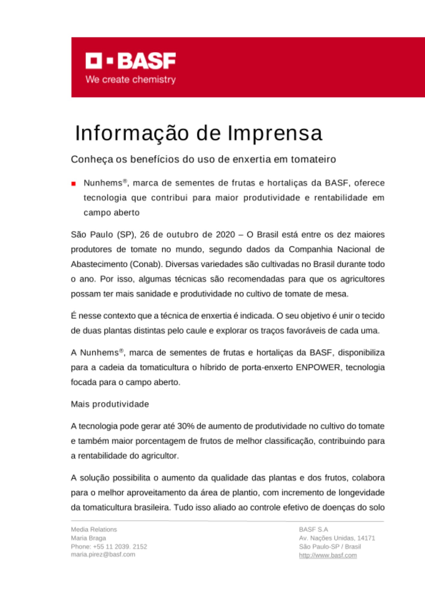 - Nunhems®, marca de sementes de frutas e hortaliças da BASF, oferece tecnologia que contribui para maior produtividade e rentabilidade em campo aberto