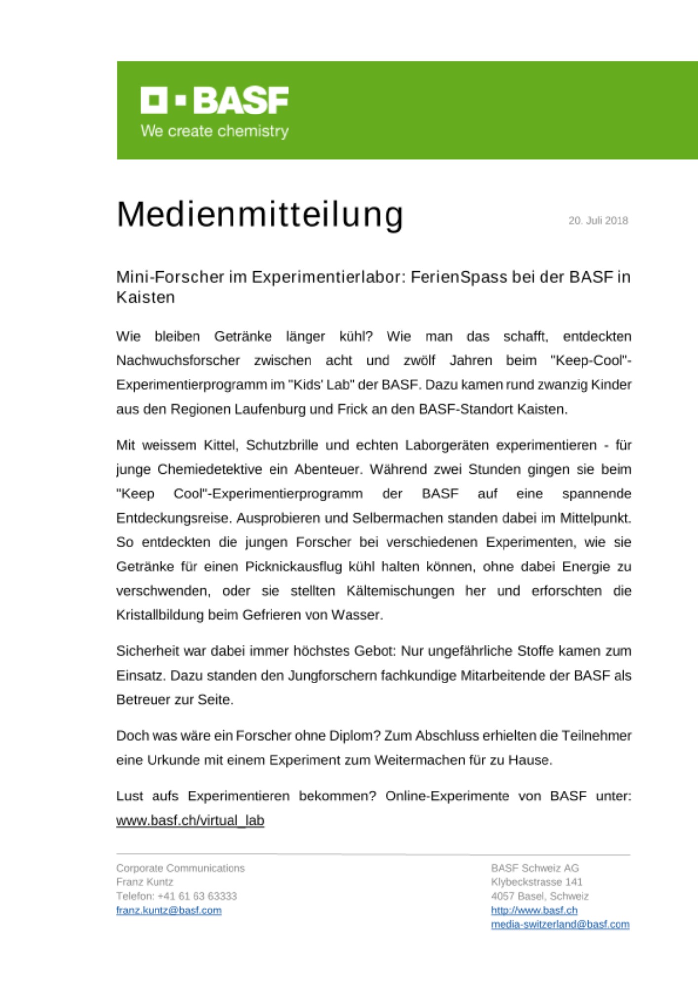 Mini-Forscher im Experimentierlabor: FerienSpass bei der BASF in Kaisten