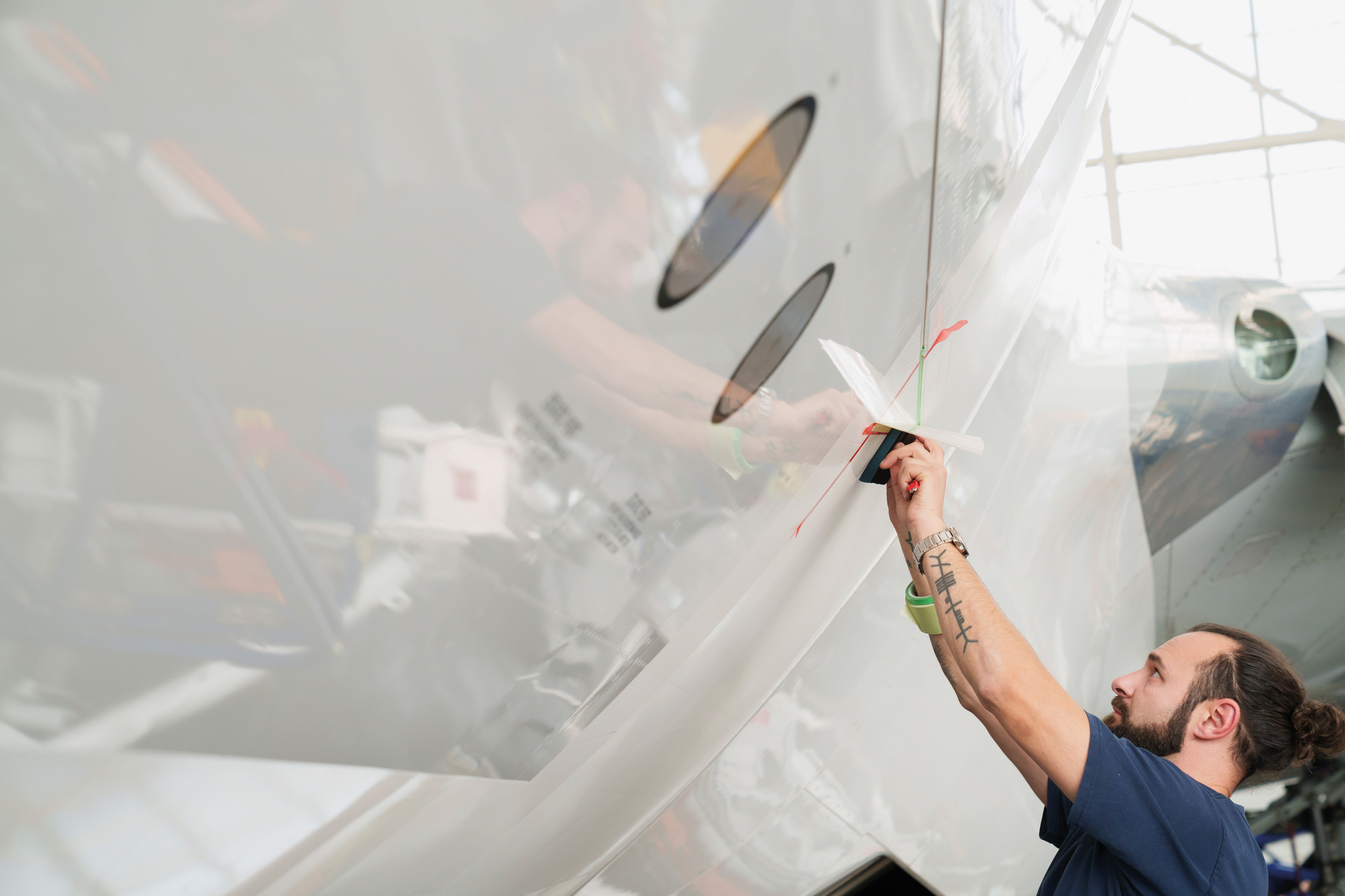 Je geringer der Luftwiderstand eines Flugzeugs ist, desto geringer ist auch der Kraftstoffverbrauch – und damit der CO2-Ausstoss. Ein Team von BASF hat gemeinsam mit Lufthansa Technik NovaFlex SharkSkin entwickelt. Vorbild ist die Haut des Hais, auf deren Oberfläche winzige Rippen den Wasserwiderstand reduzieren. Der funktionale Film von BASF mit nur 50 Mikrometer grossen Rippen verringert die Reibung von Oberflächen, ist UV-beständig und widersteht auch schnell wechselnden Temperaturen und mechanischen Belastungen. Der innovative Oberflächenfilm wurde seit 2022 unter anderem auf allen Boeing 777-300ER-Passagierflugzeugen von SWISS International Air Lines aufgebracht. NovaFlex SharkSkin reduziert hier den Luftwiderstand um 1,1 %, was jährlich rund 400 Tonnen Kerosin und etwa 1.250 Tonnen CO2 pro Boeing 777-300ER-Passagierflugzeug einspart. In Zukunft soll der Flugzeugkörper noch grossflächiger mit NovaFlex SharkSkin überzogen werden. Dadurch würde sich der Luftwiderstand um circa 3 % verringern. Zudem arbeitet BASF aktuell daran, den funktionalen Film für andere Industrien weiterzuentwickeln: Bei Rotorblättern von Windrädern kann der Oberflächenfilm zu einer effizienteren Stromerzeugung führen, bei Schiffsrümpfen den Treibstoffverbrauch reduzieren.
