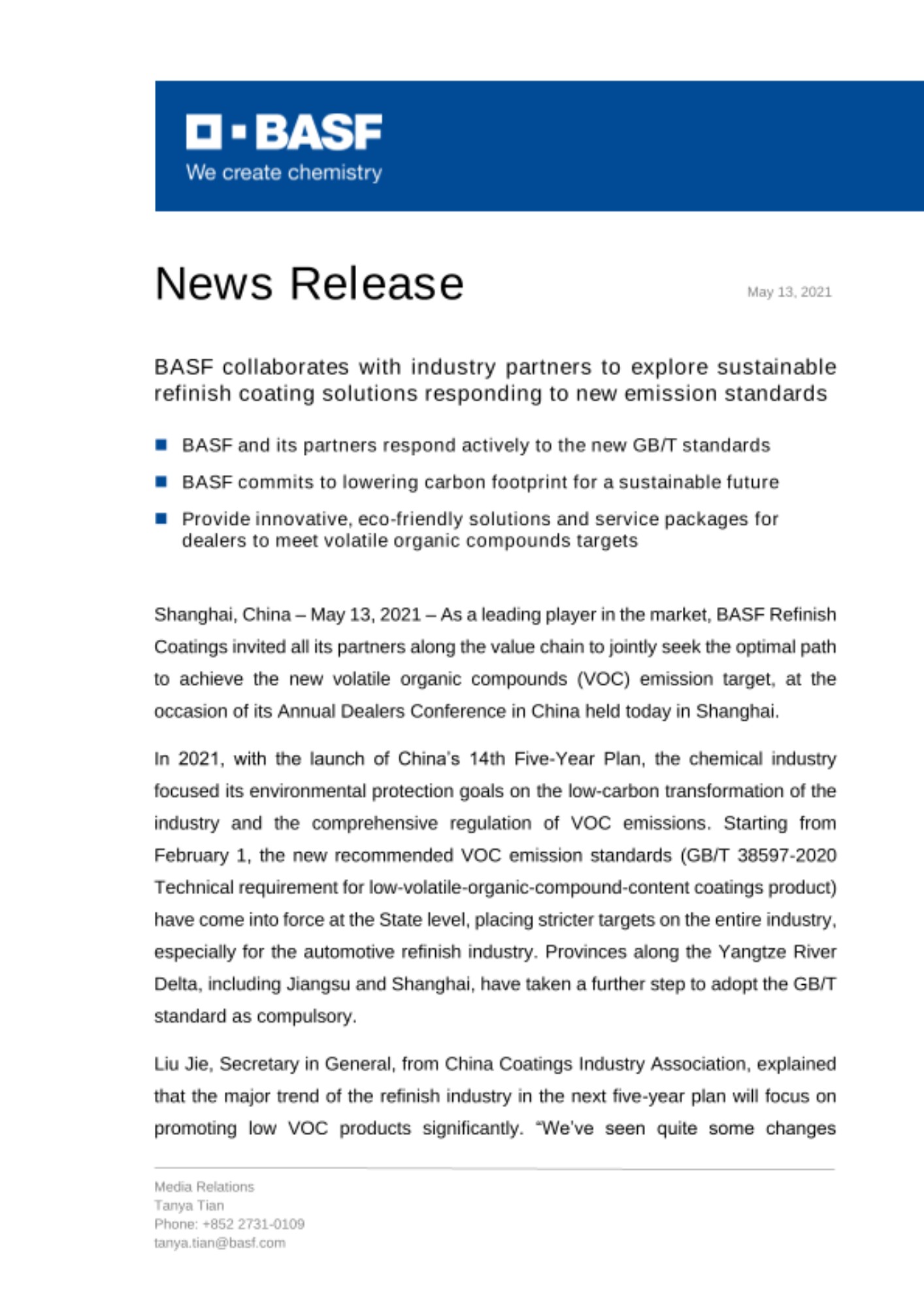 - BASF and its partners respond actively to the new GB/T standards