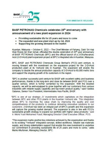 BASF PETRONAS Chemicals celebrates 25th anniversary with announcement of a new plant expansion in 2024