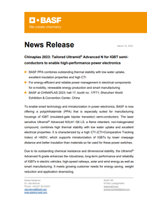 - BASF at CHINAPLAS 2023: hall 17, booth no. 17F71; Shenzhen World Exhibition & Convention Center, China