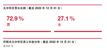 巴斯夫重视工作环境的多元化以及性别平等,以实现长期成功。我们目标2030 年前,在全球范围内将女性担任领导职务的比例提高到30%;目前,我们已经取得长足的进展。到2022 年底,巴斯夫集团女性管理人员的比例为27.2%(2021 年:25.6%);大中华区女性管理人员的比例为29.3%(2021 年:28.5%)。