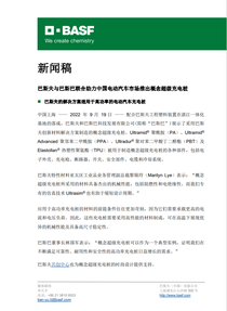 特性材料业务部整合了巴斯夫在创新定制塑料方面的全部专业知识,在全球活跃于交通、建筑、工业应用和消费品这四大领域。本业务部拥有完善的产品和服务组合,对面向应用的系统解决方案有着深入的了解。我们凭借与客户的密切合作以及对解决方案的重点关注推动盈利增长和业务发展。强大的研发实力为创新产品和应用的开发奠定了坚实基础。2021 年特性材料业务部全球销售额达到 72.9 亿欧元。如欲了解更多信息,请访问:www.plastics.basf.com。