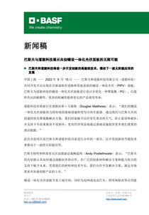 - 巴斯夫和道能科技将进一步开发创新的高能效技术,推动下一波太阳能应用的发展
