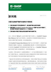 - 巴斯夫推出基于可再生原材料生产、经生物质平衡认证的汽车涂料
