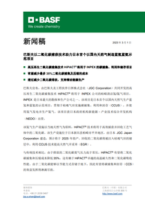 由巴斯夫和日本工程伙伴日挥株式会社(JGC Corporation)联合开发的高压再生二氧化碳捕集技术,2010 年在 INPEX 位于 Koshijihara 的天然气工厂完成了验证试验并实现商业化应用。2015 年,塞尔维亚石油公司 Nahtna Indasligija Servizje 采用 HiPACT® 技术作碳捕集与封存(CCS)的天然气加工厂开始商业化运营,一直至今。