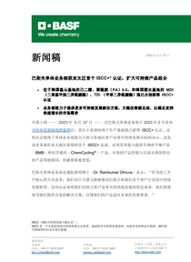 巴斯夫单体业务部获亚太区首个 ISCC+ 认证,扩大可持续产品组合