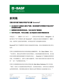 在巴斯夫,我们创造化学新作用——追求可持续发展的未来。我们将经济上的成功、社会责任和环境保护相结合。巴斯夫在全球拥有超过 111,000 名员工,为几乎所有国家、所有行业的客户成功作出贡献。我们的产品分属六大业务领域:化学品、材料、工业解决方案、表面处理技术、营养与护理、农业解决方案。2022 年巴斯夫全球销售额为 873 亿欧元。巴斯夫的股票在法兰克福(BAS)证券交易所上市,并以美国存托凭证(BASFY)的形式在美国证券市场交易。欲了解更多信息,请访问:www.basf.com
