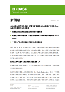 巴斯夫电池材料和回收是巴斯夫催化剂业务部的一部分。该部门的产品组合还包括环境催化剂和金属解决方案,以及工艺催化剂。来自汽车与运输、化工、塑料或能源与资源等不同行业的客户都受益于我们的创新解决方案。更多关于巴斯夫催化剂业务部的信息,请访问:www.catalysts.basf.com。