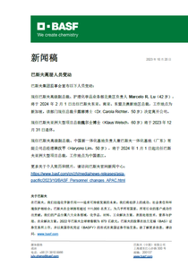 现任巴斯夫亚洲大型项目总裁魏尔士博士(Klaus Welsch,60岁)将于 2023 年 12 月 31 日退休。
