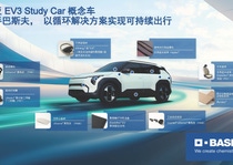 起亚 EV3 Study Car 在车身的多个部件和组件中使用了 8 种来自巴斯夫的可持续材料。这些材料解决方案包括 Ccycled® 和生物质平衡的工程塑料(Ultramid® 和 Ultradur®)、生物基和 Cycled® 聚氨酯(Elastoflex®)、在超临界发泡(SCF)中应用的工业后回收的(PIR)Infinergy® 赢飞力® 发泡热塑性聚氨酯(E-TPU)、生物聚氨酯合成革(Haptex®)以及水性粘合剂(Acrodur®),这些材料的使用为整体碳排放的减少作出贡献。