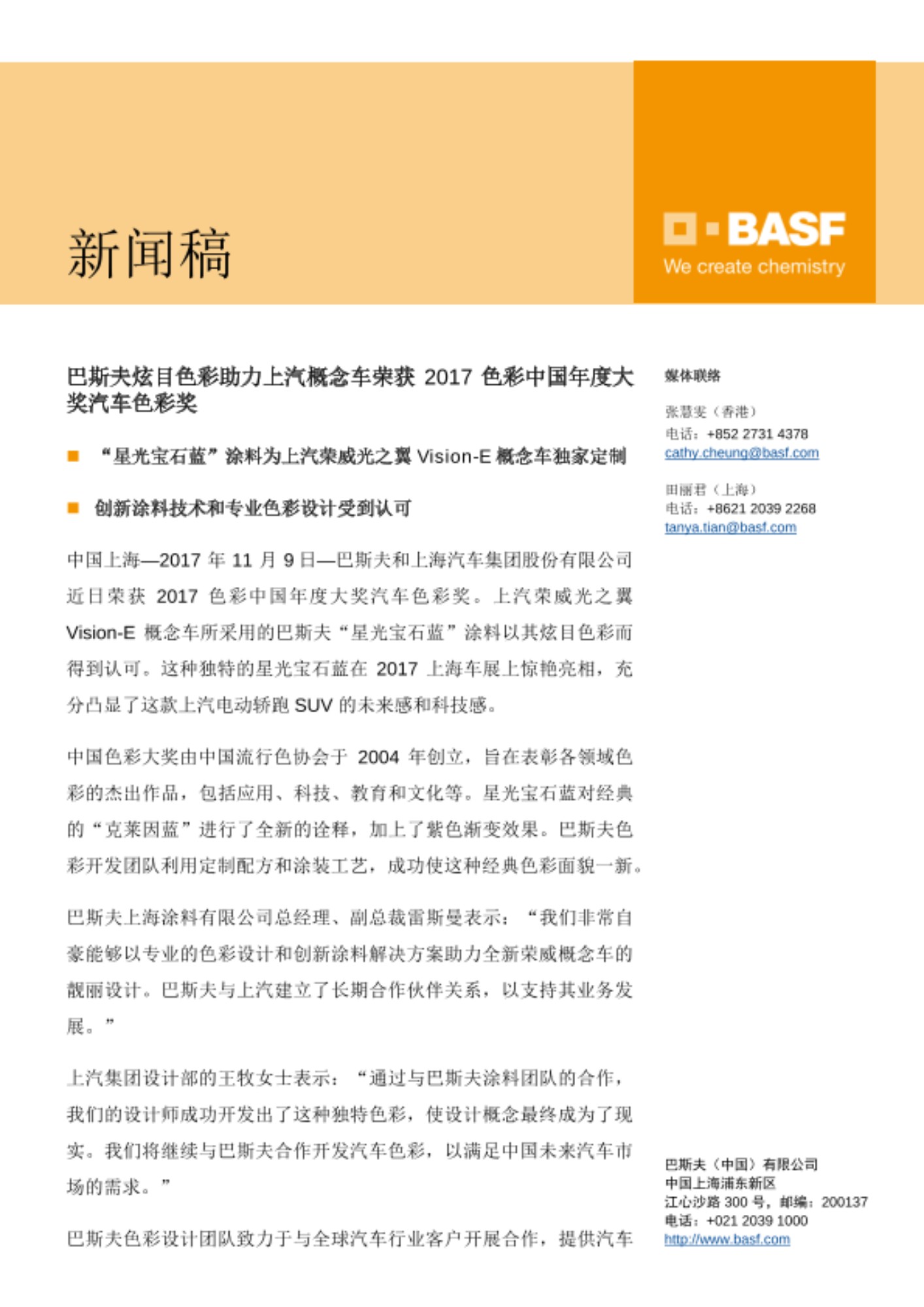 巴斯夫涂料——创新方案,超乎想象。如欲了解更多关于巴斯夫涂料业务部及其产品的信息,敬请访问 www.basf-coatings.com。