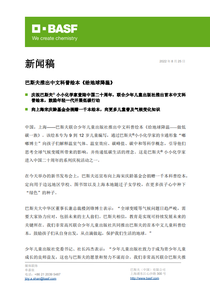 - 庆祝巴斯夫® 小小化学家登陆中国二十周年,联合少年儿童出版社推出首本中文科普绘本,鼓励年轻一代开展低碳行动