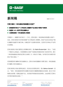 中国湛江——2022 年 9 月 6 日——今日,巴斯夫湛江一体化基地首套装置正式投产。自此,巴斯夫将每年为中国市场增产 6 万吨改性工程塑料,将该产品亚太区的总产能从 2023 年起提升至 42 万吨,以满足客户日益增长的需求,尤其在汽车和电子产品等行业领域。