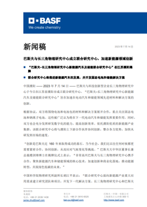 - “巴斯夫–长三角物理研究中心新能源汽车及储能联合研究中心”在江苏溧阳揭牌
