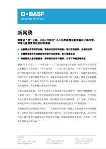 2024 年巴斯夫® 小小化学家上海站实验项目介绍: