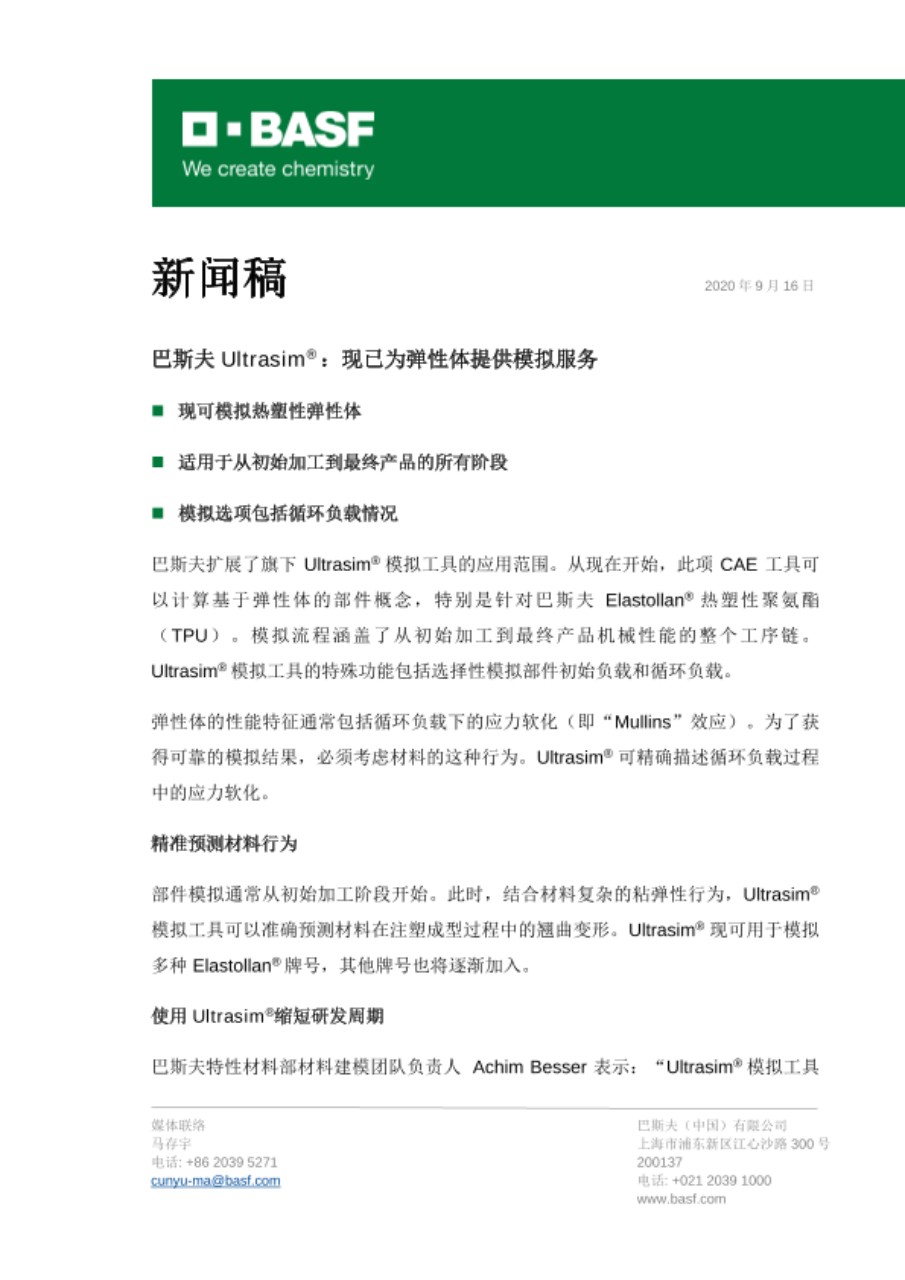 巴斯夫 Ultrasim® :现已为弹性体提供模拟服务