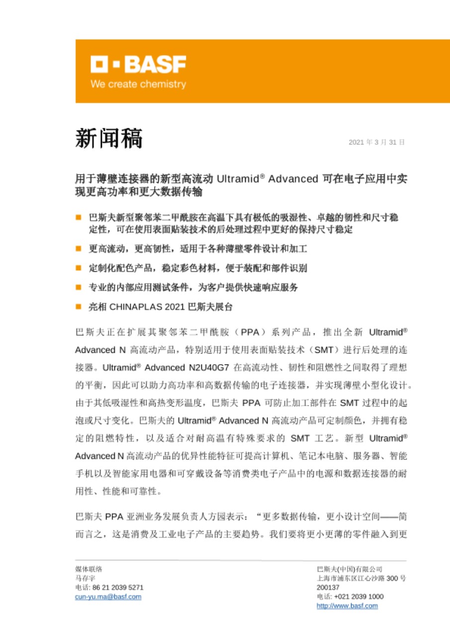 欲了解更多信息,敬请访问:www.ultramid-advanced-n.basf.com和www.ppa.basf.com