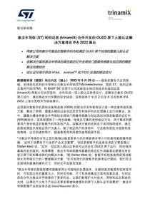 意法半导体 (ST) 和创迈思 (trinamiX) 合作开发的 OLED 屏下人脸认证解决方案将在 IFA 2022 展出