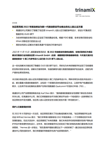 2022 年 11 月 15 日 —— 美国夏威夷茂宜岛,在 2022 年的骁龙年度峰会期间,生物识别和红外感应解决方案的行业先驱创迈思 trinamiX GmbH(总部:德国莱茵河畔路德维希港)今天首次演示在最新的骁龙® 8 第二代参考设计上运行的 OLED 屏下人脸认证。