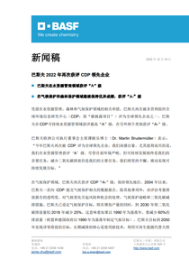 巴斯夫 2022 年再次获评 CDP 领先企业