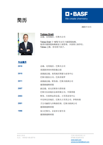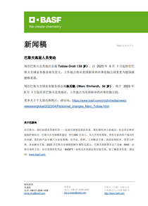 现任巴斯夫北美地区总裁 Tobias Dratt(50 岁),自 2023 年 5 月 1 日起担任巴斯夫全球业务服务部负责人,工作地点将从美国新泽西州弗伦翰公园变更为德国路德维希港。
