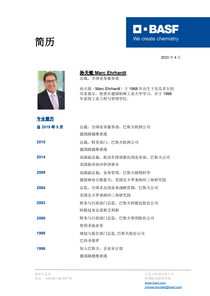 现任巴斯夫全球业务服务部总裁孙天铭(Marc Ehrhardt,54 岁),将于 2023 年 5 月 1 日起负责巴斯夫北美地区,工作地点为美国新泽西州弗伦翰公园。