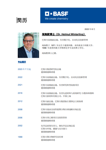 闻海默博士将接替现任巴斯夫集团研究部总裁 Detlef Kratz 博士(61岁)。Detlef Kratz 博士将于 2023 年 6 月 30 日退休。
