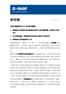 巴斯夫将于 2024 年 2 月 23 日(星期五)德国时间上午七点发布巴斯夫集团 2023 年度报告,并将分别召开分析师与投资者电话会议(德国时间上午 9:30 到 10:30)和新闻发布会(德国时间上午 11:00 到 12:00),介绍财报数据。